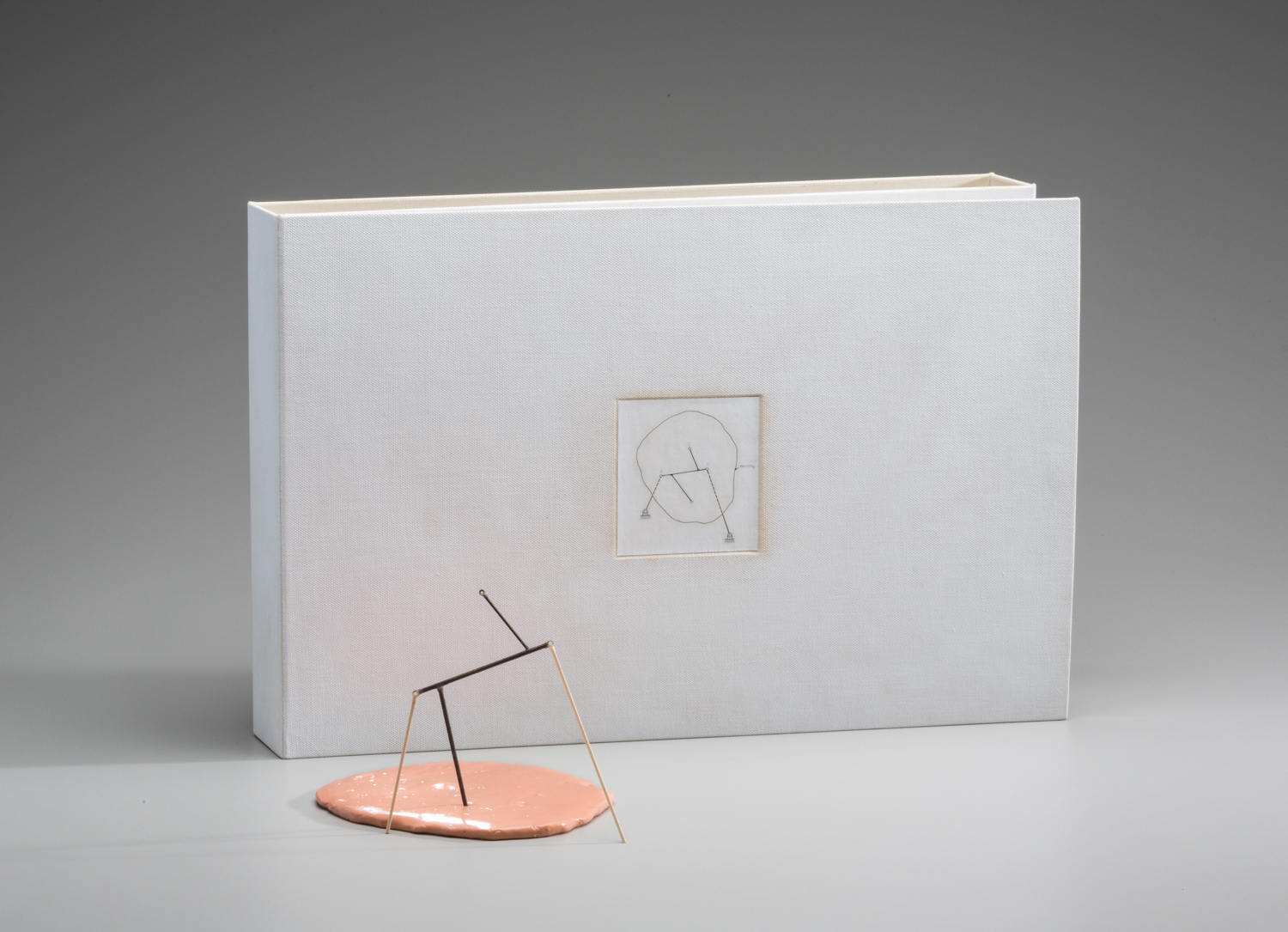 21 drawings, acrylic box with wrap around cover, clay, wire