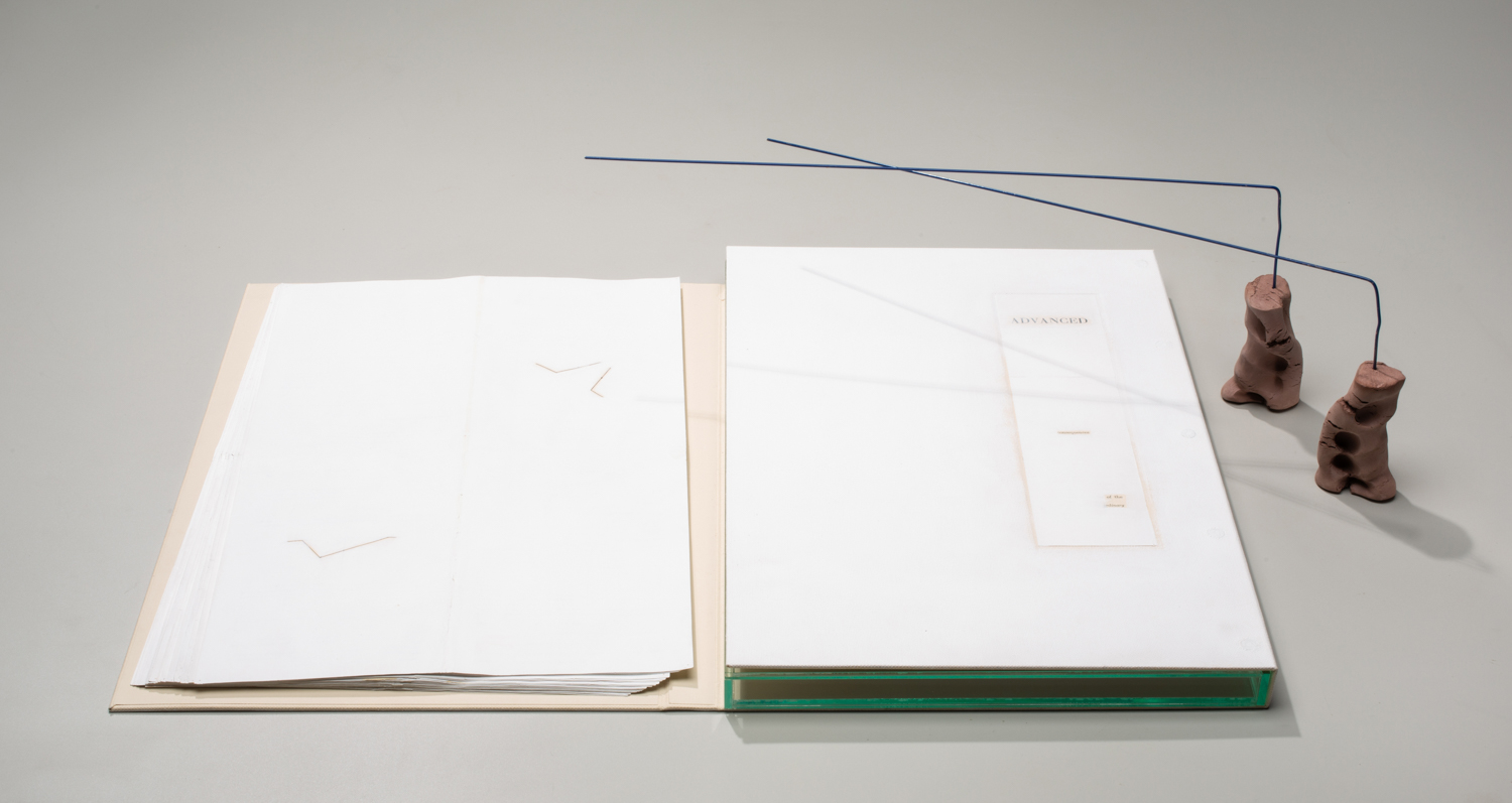 21 drawings, acrylic box with wrap around cover, clay, wire
