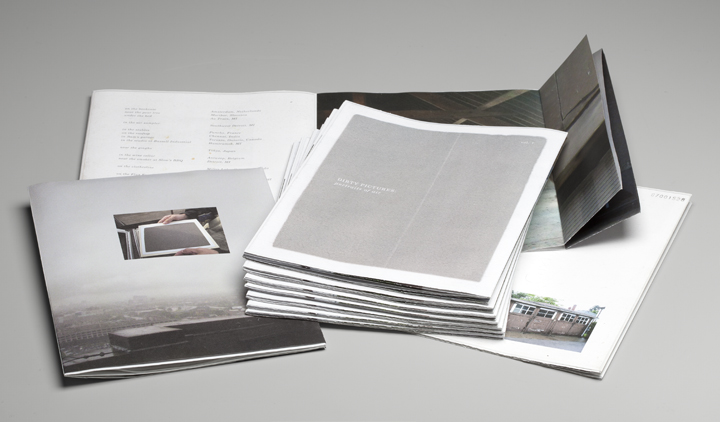 Dirty Pictures: Portraits of Air is an ongoing, unscientific project that focuses on the movement and quality of air around the world. Using funds from a Kresge Artist Fellowship, the project began in 2009 with the disbursement of twenty-four 8 x 10" air filters to people in seven countries, including 14 locations within the U.S. Each participant in the project was asked to place the filter in a location of their choosing so it could pick up particulates in the atmosphere. The project documenting the filters and their placements was published in vol. 1 of the zine "Dirty Pictures: Portraits of Air" in November 2010.