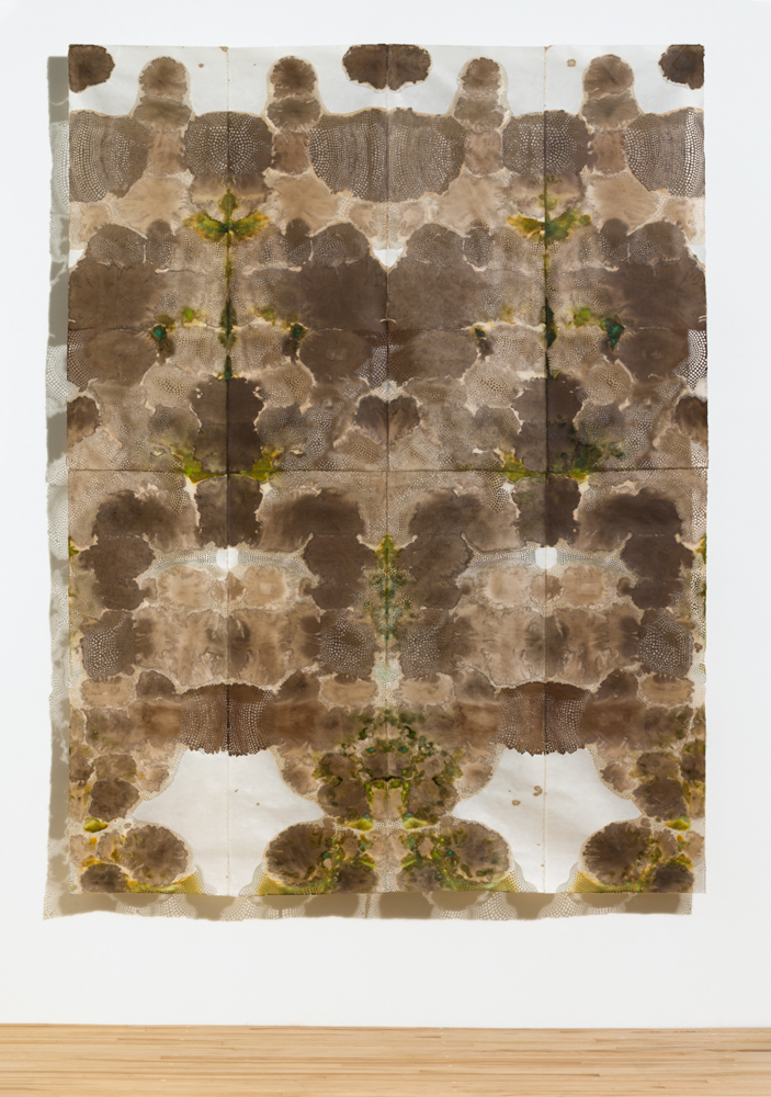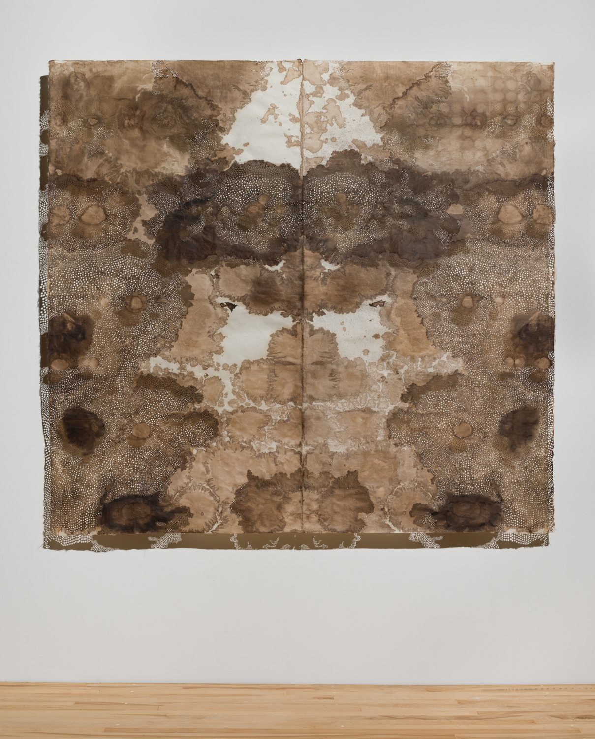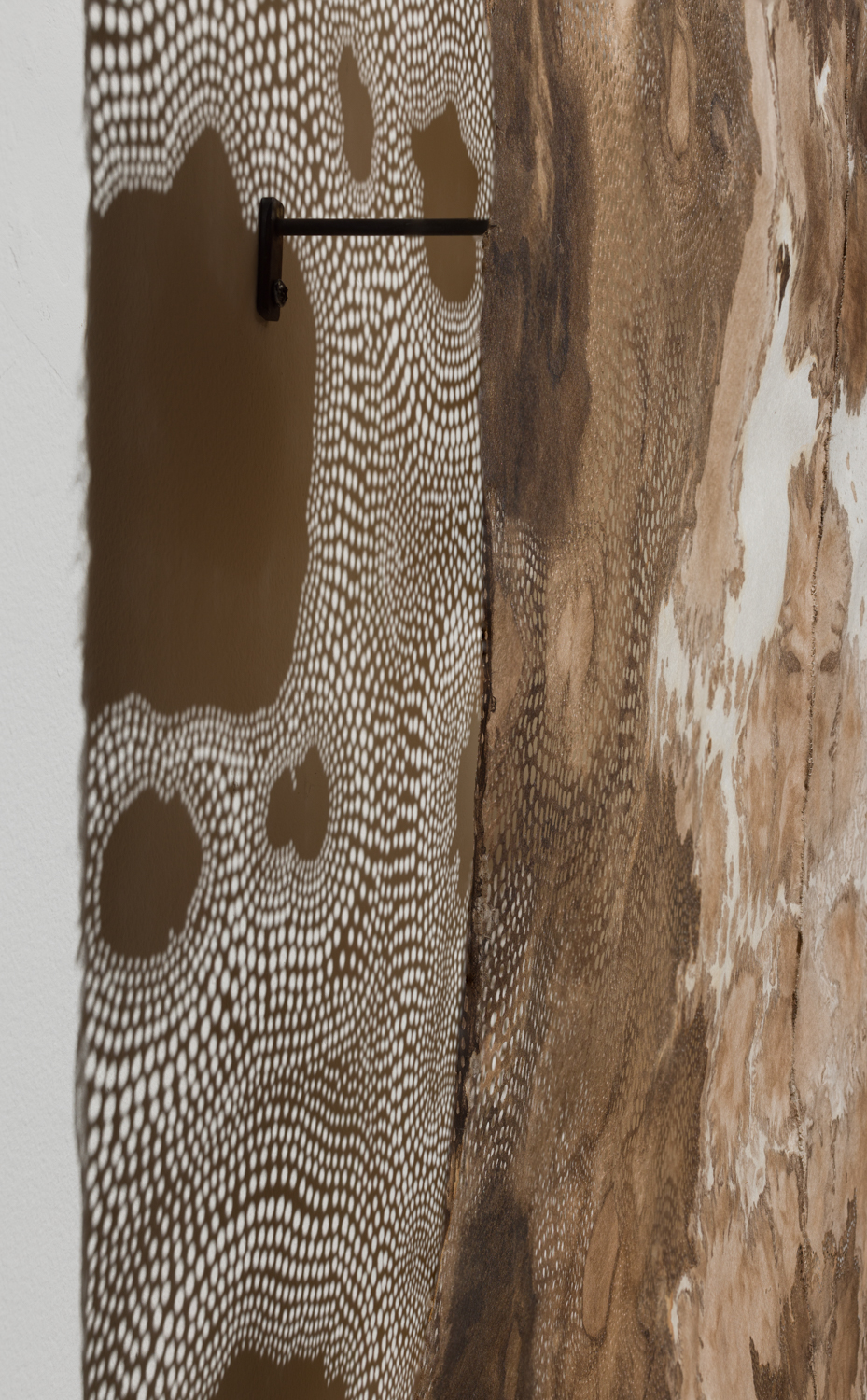 Walnut stains, sewing, hand-perforations on Japanese paper